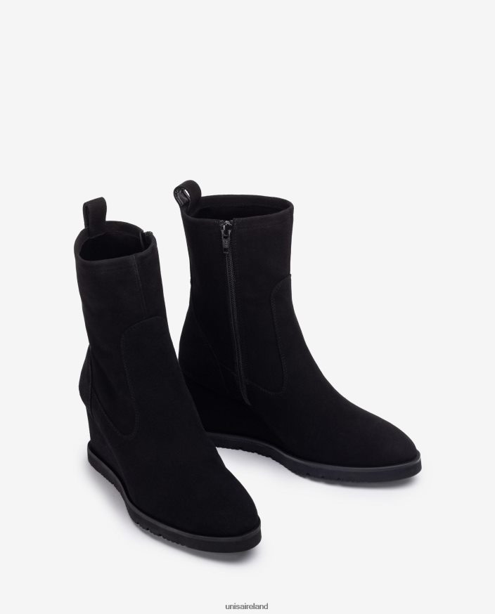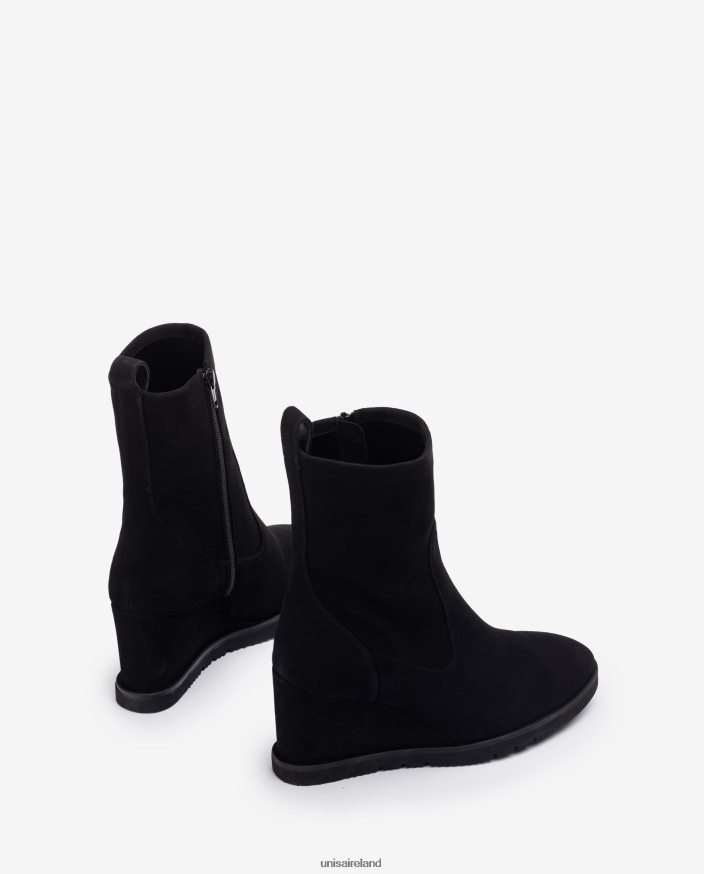 Suede ankle boot with a zip on the inside. Light wedge made with Superlight technology 8cm high in a matching colour and a 1.5cm platform. Unisa advocates new designs and creations for this new AW22 season.