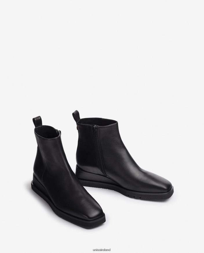 Black 80842D911 Women Unisa Leather ankle boot with a wedge