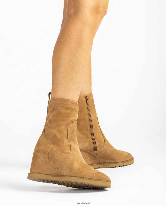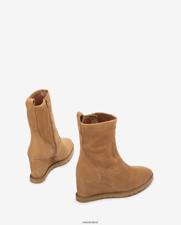 Suede ankle boot with a zip on the inside. Light wedge made with Superlight technology 8cm high in a matching colour and a 1.5cm platform. Unisa advocates new designs and creations for this new AW22 season.