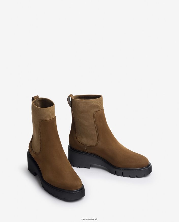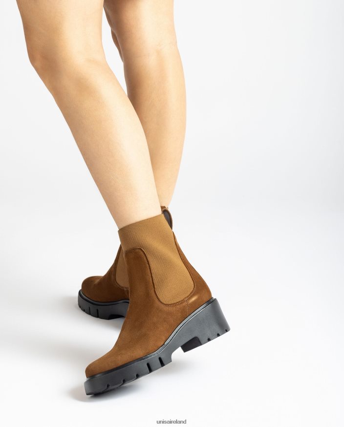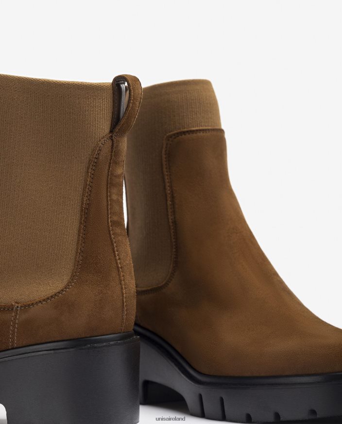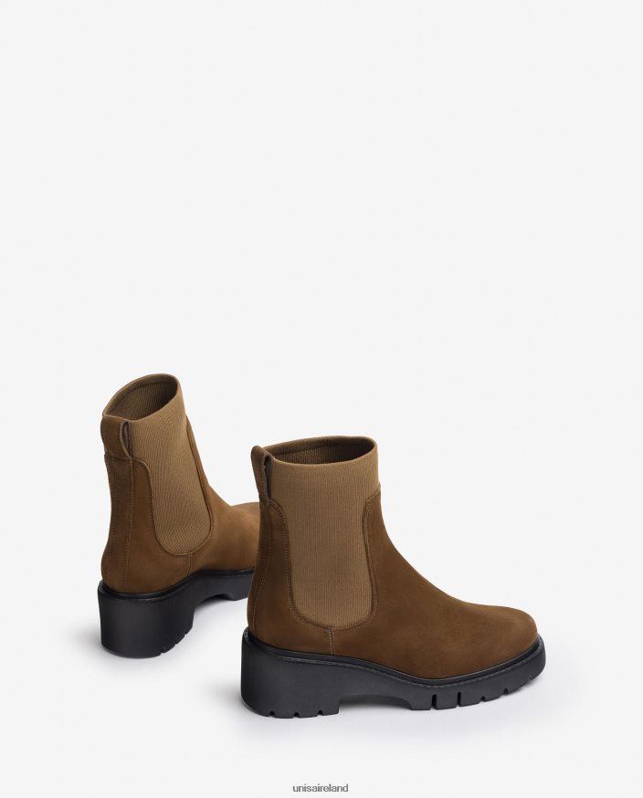 Brown 80842D920 Women Unisa Suede ankle boot with stretch fabric