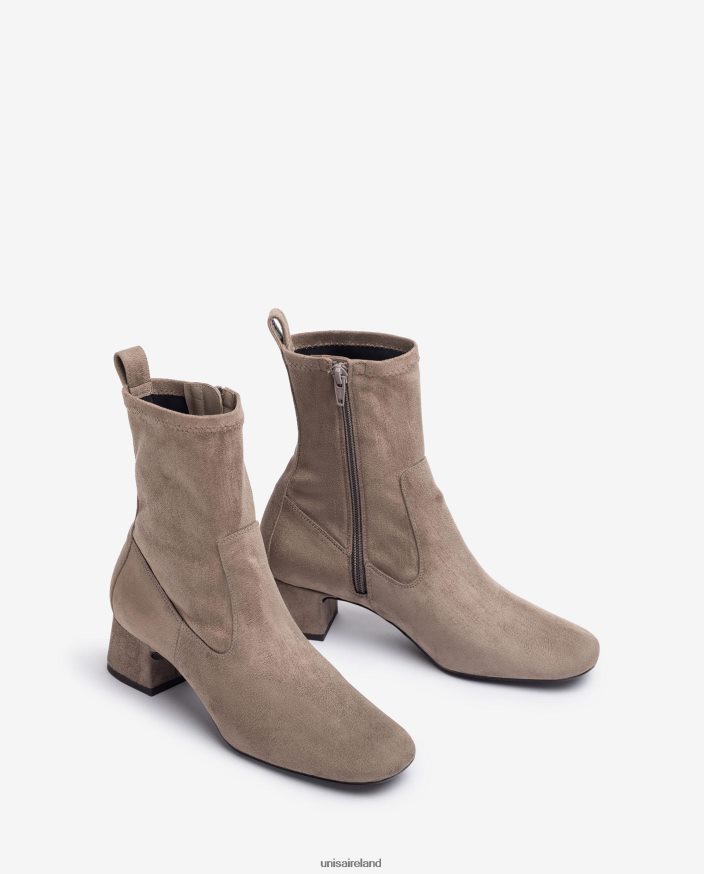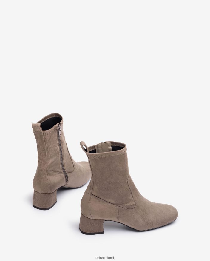 Square toe ankle boots made in suede effect stretch fabric. Matching colour 4.5cm heel and rubber non-slip, light and flexible sole. An essential classic in the UNISA world.