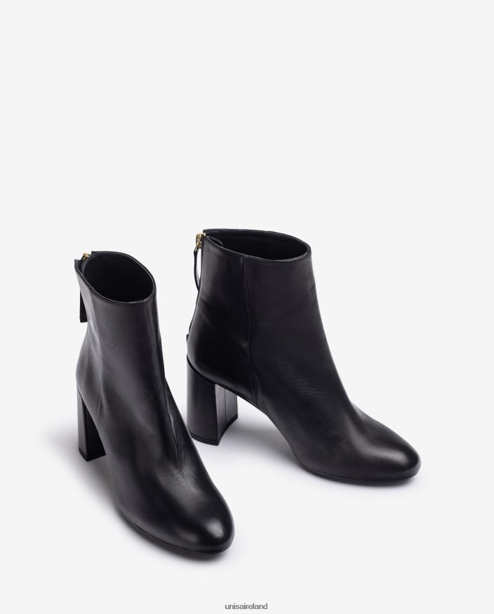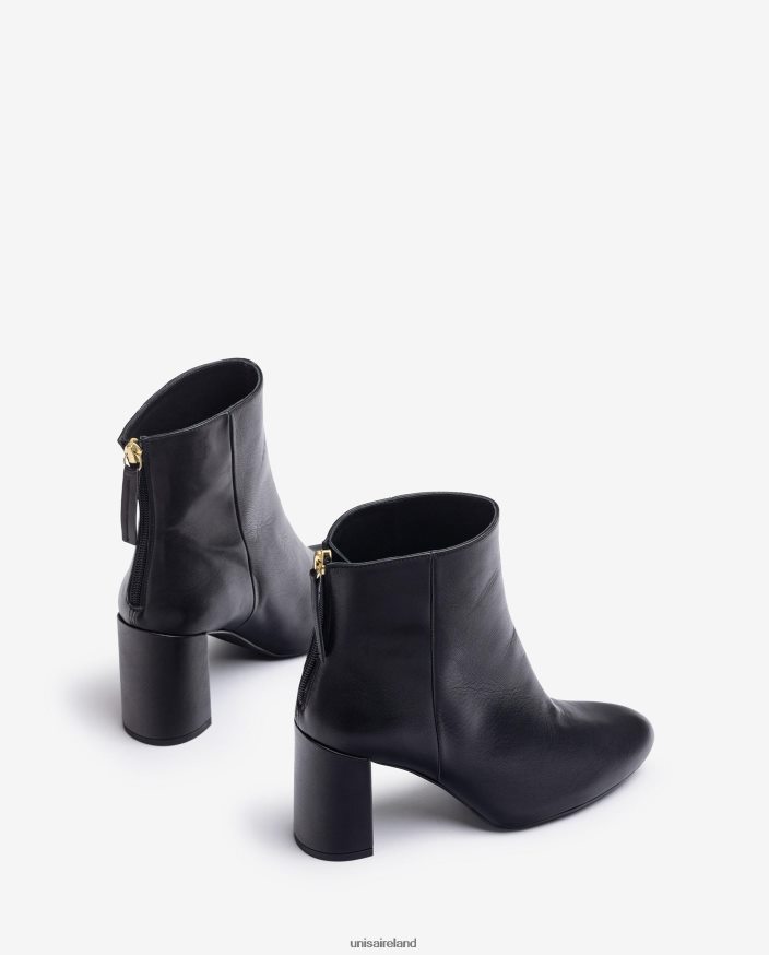 Square toe ankle boot made in leather. Zip on the back. Heel 8.5cm high. Light, flexible, non-slip rubber sole. The perfect allies for the UNISA woman.