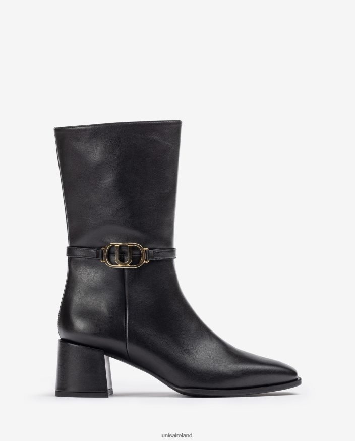 Leather ankle boots with a zip inside. Metal trim on the side. Matching wide 6cm high heel. Non-slip, flexible and light rubber sole. An essential classic in the UNISA world.