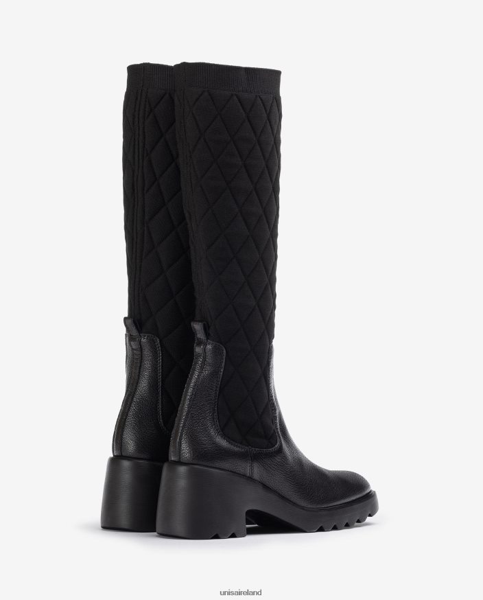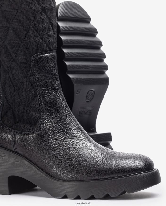 Boot made in leather and stretch fabric made from recycled plastic bottles (PET). Superlight, very light, flexible and comfortable sole. 7cm high heel and a 2cm platform. The LEIVA boots from Unisa will be your great allies this winter.