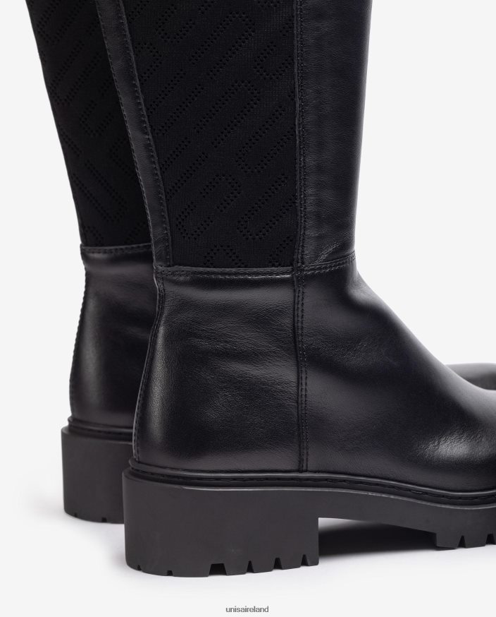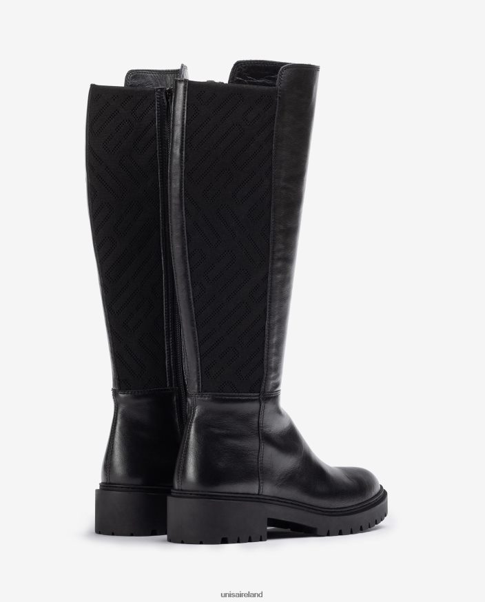 Graceful 80842D1065 Women Unisa Leather boot with patterned stretch fabric