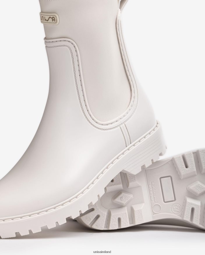 Rubber ankle boot with a stretch fabric quarter top line in faux leather fabric. Rubberized logo trim on the quarter top-line. Removable and ergonomic insole made with Respilon inner.