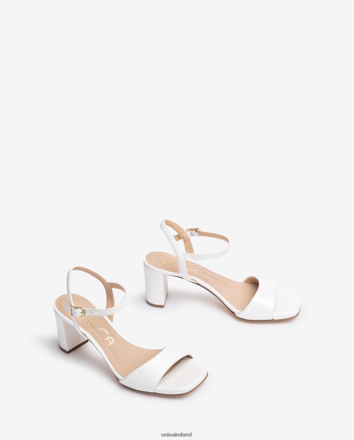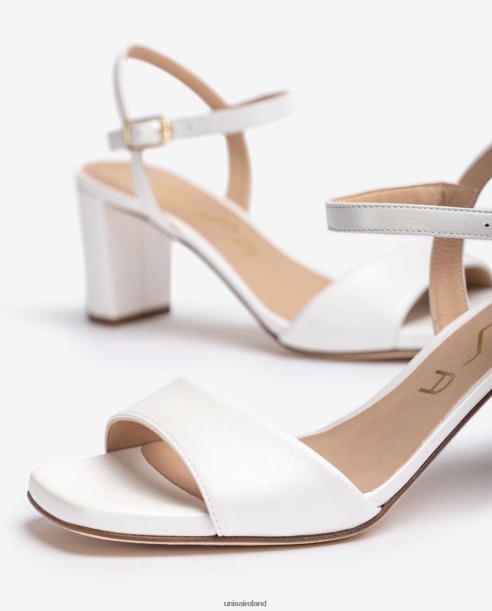 Bridal leather sandal. Ankle strap that can be adjusted using the metal buckle. Square sole unit covered in matching colour leather and a 6 cm wide heel. Non-slip leather outsole.