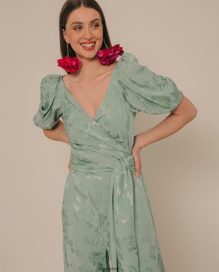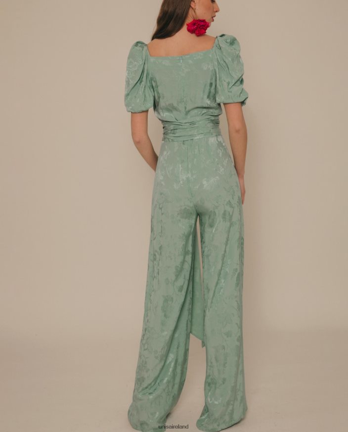 It is a long, flowing fit jumpsuit with puffed sleeves and a V-neck. Crossover fit around the waist that is finished off with a tie belt on the front. Palazzo pants. Invisible zip closure and a square neckline at the back. Our studio model, Polina is 1.72 cm tall and she is wearing the XS size.