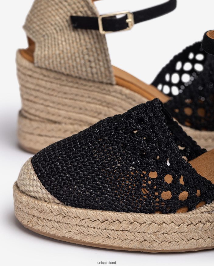Black 80842D783 Women Unisa Espadrille vamp-heel in crochet stitching