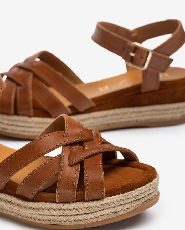 Brown 80842D429 Women Unisa Leather sandals with metallic buckle