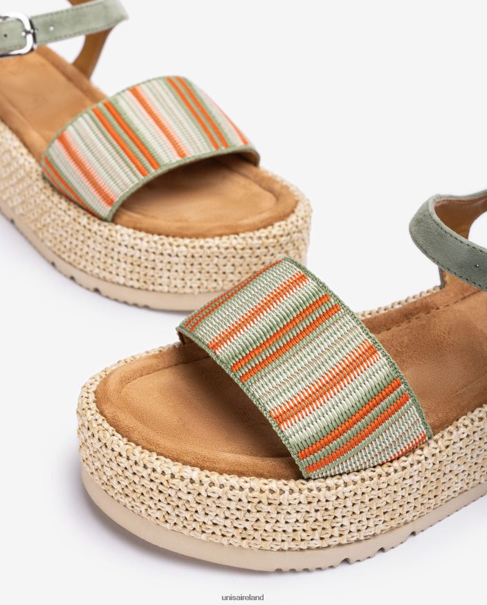 Green 80842D103 Women Unisa Sandal with a wide multicolour strap