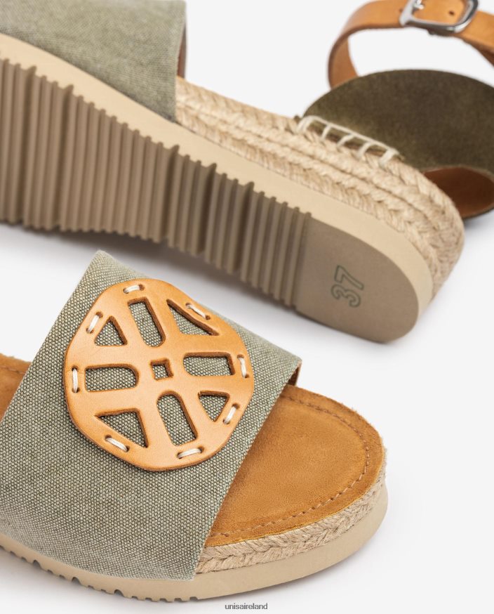 Green 80842D725 Women Unisa Jute sandal with monogram
