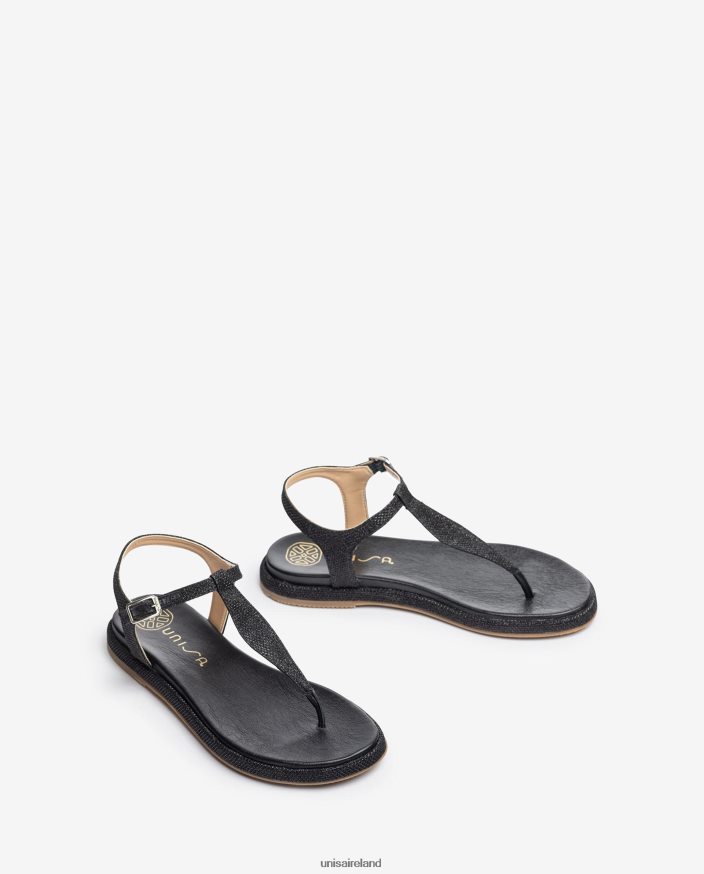 Home| Shoes| Flat Sandals| Black 80842D26 Women Unisa Toe-post sandal in shiny fabric