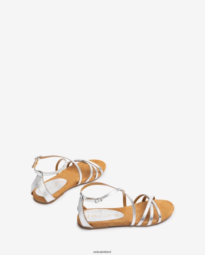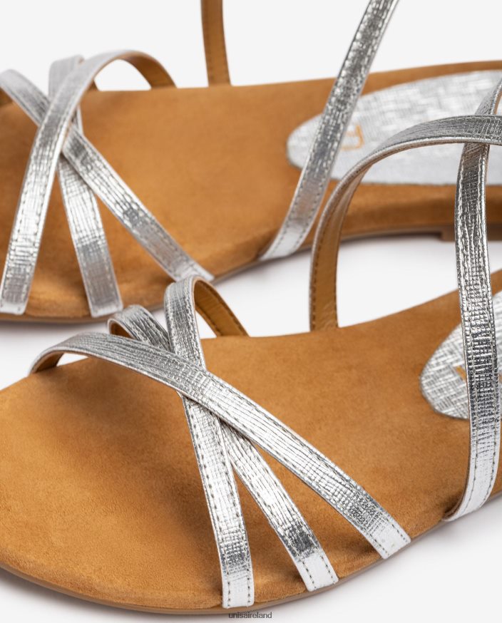 Silver 80842D391 Women Unisa Metalized leather flat sandals