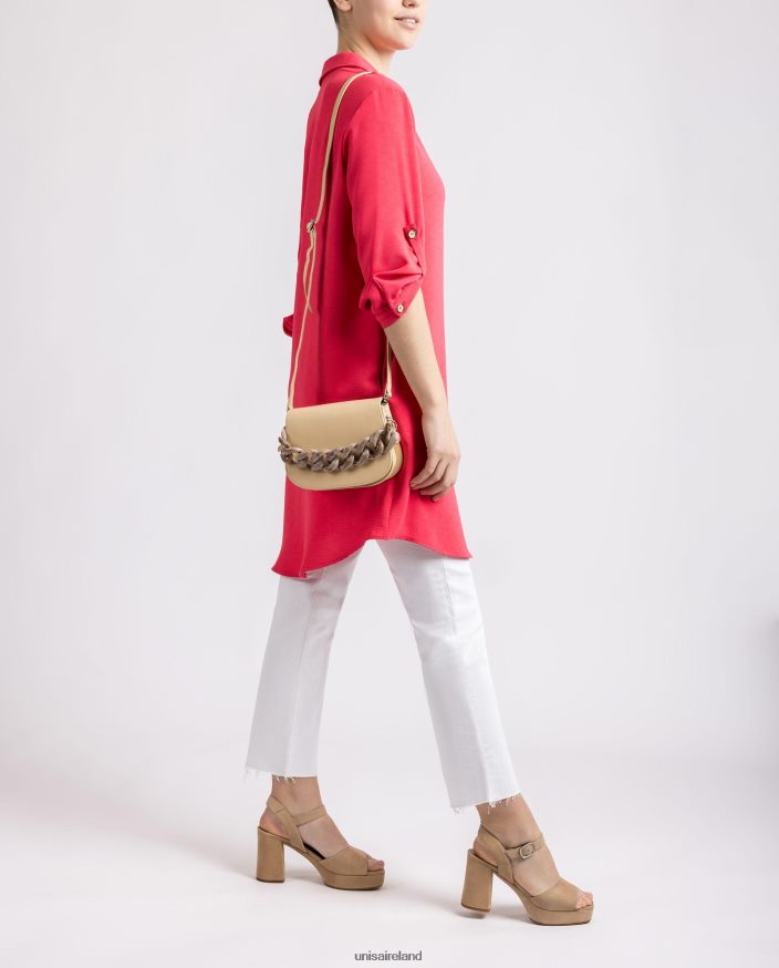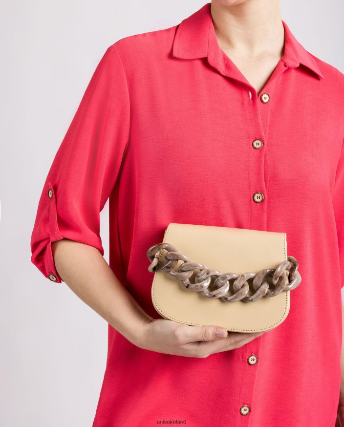 Small leather handbag. Compartment with magnet closure. Hand strap with large chain and cross-body leather shoulder strap. Complete all your looks with this Unisa bag.