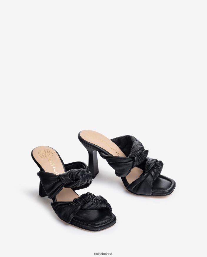 Leather sandals made with padded straps forming two knots. With an 8.5cm geometric heel and a very cushioned sole for your comfort, you'll be amazed by the comfort of these sandals!
