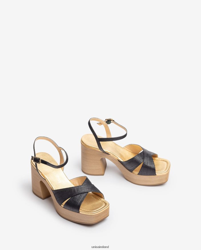 Black 80842D71 Women Unisa Raffia sandal with a block heel