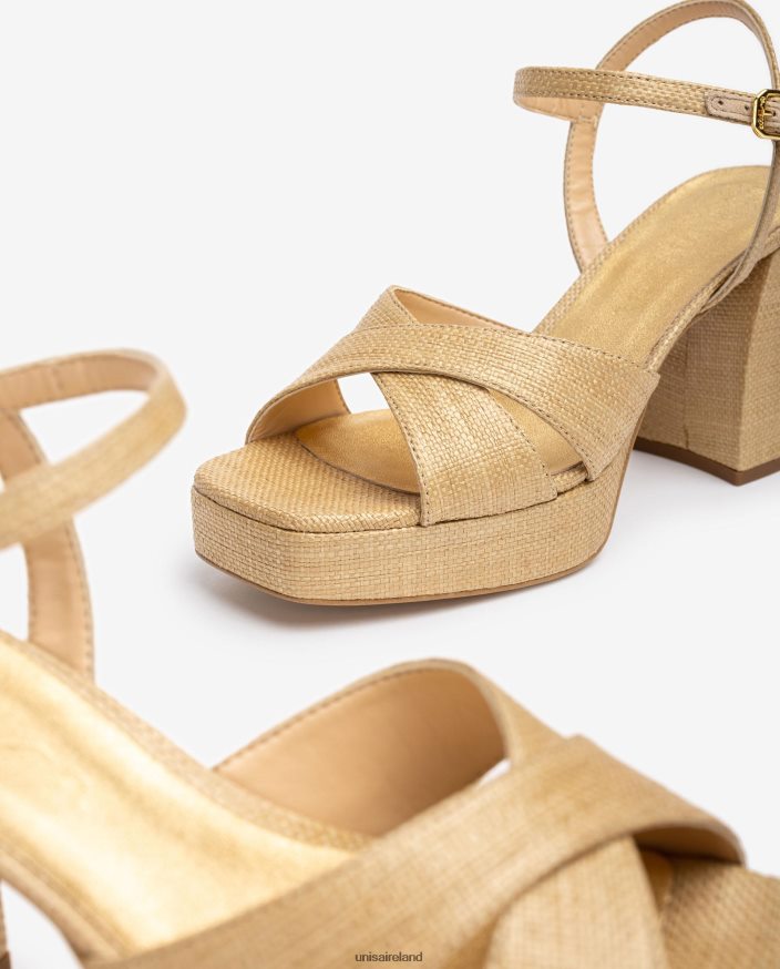Square toe sandal made in raffia fabric with a strappy vamp. 3cm platform and a 9cm heel. An ankle strap that can be adjusted using the metal buckle. Light, non-slip, rubber sole. The OZZY sandals will be your best accessory for all your looks.