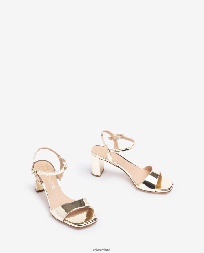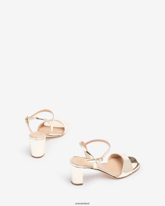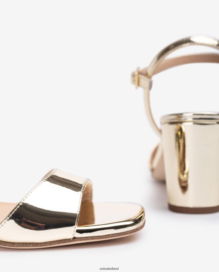 Mirror effect leather fabric sandals. Ankle strap that can be adjusted using the metal buckle. Square sole unit covered in matching colour leather and a 6 cm wide heel. Non-slip leather outsole.
