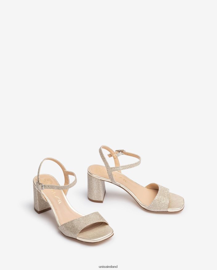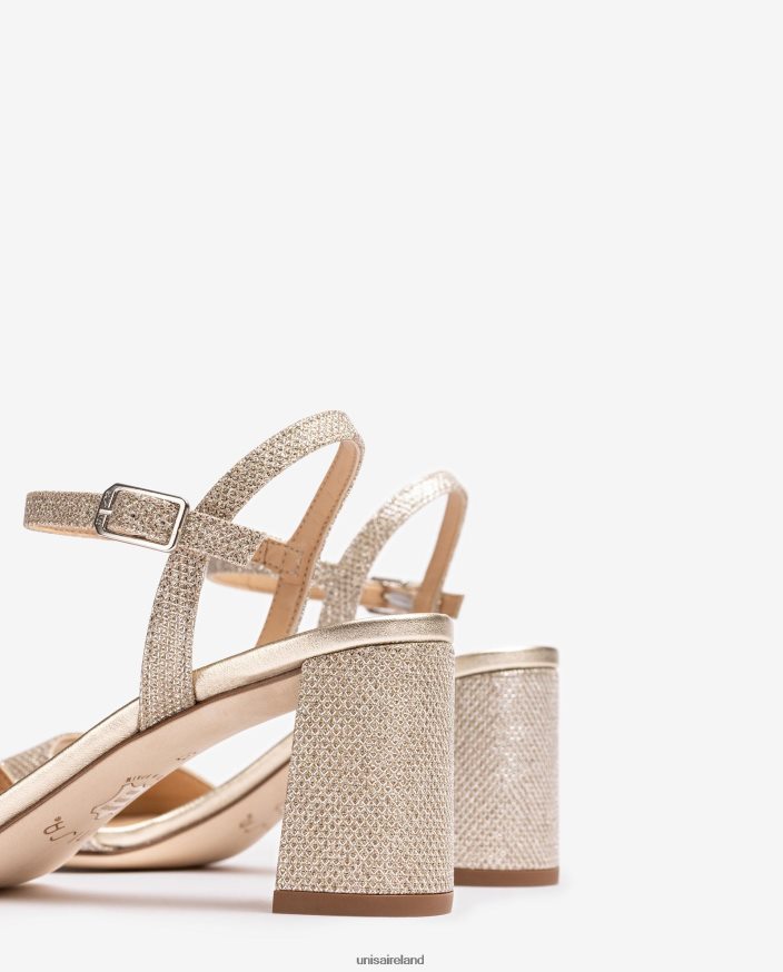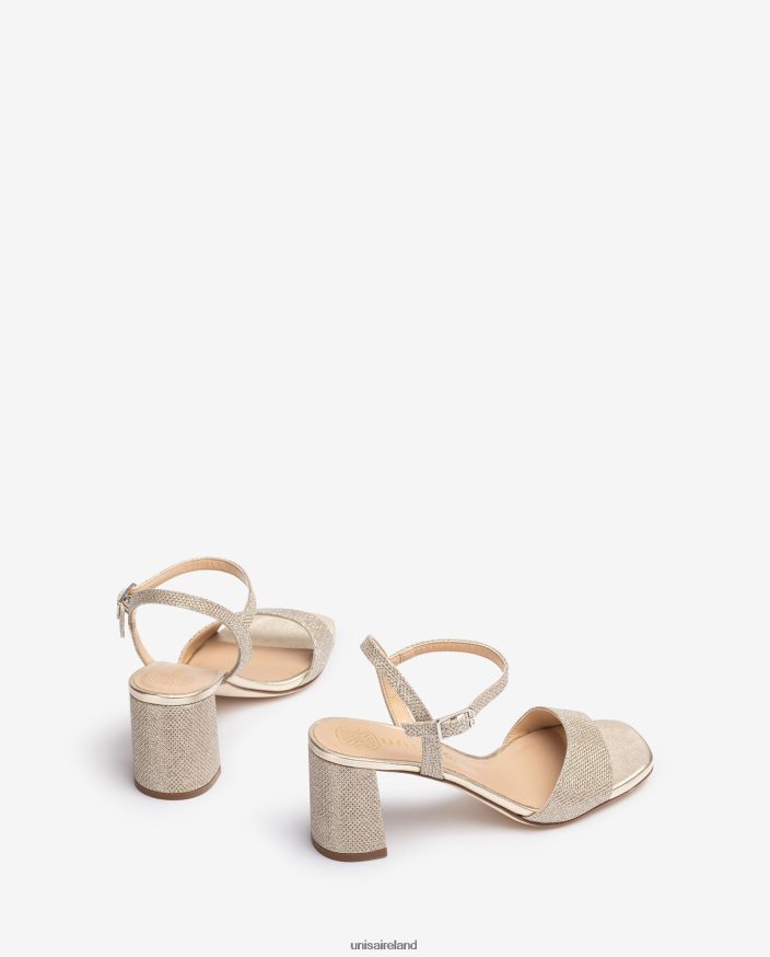 Square sole sandal made in shiny fabric. Wide 6cm heel in a matching tone. An ankle strap that can be adjusted using the metal buckle. Leather sole.