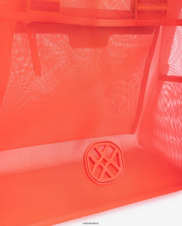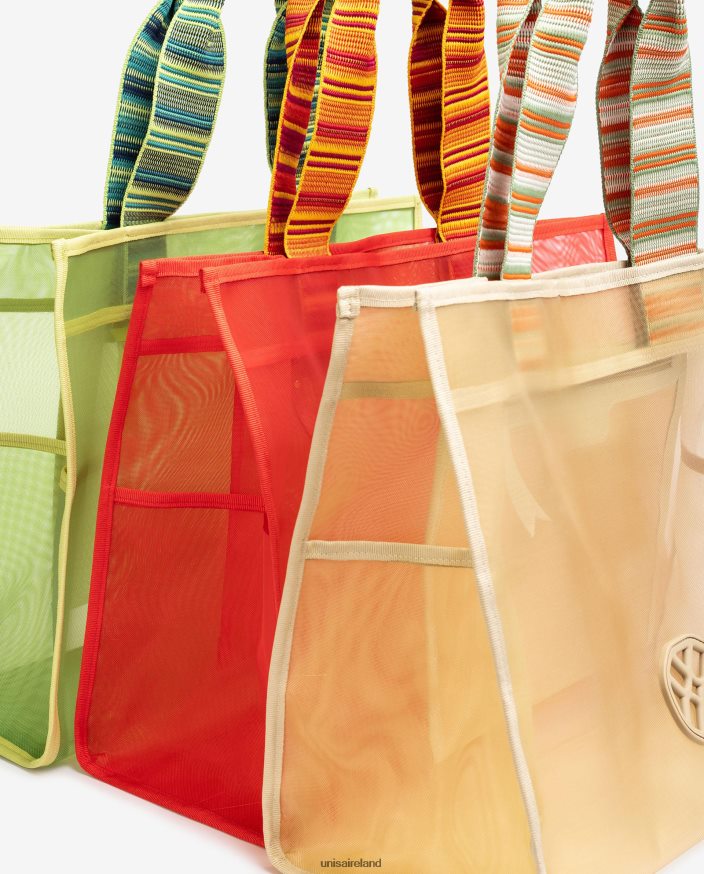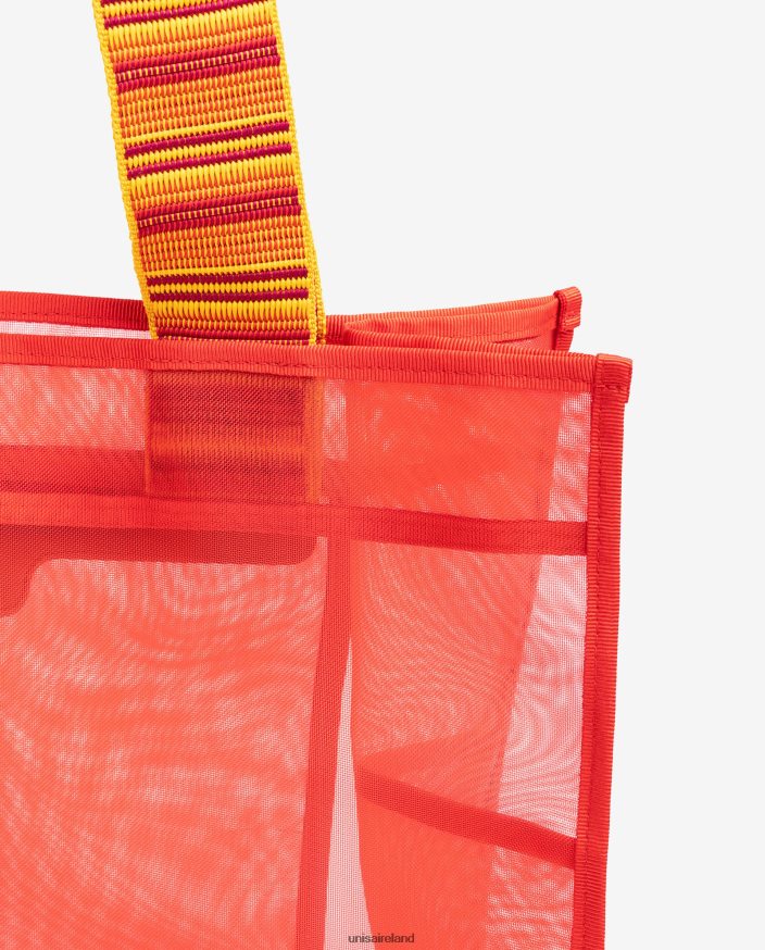Large mesh bag available in various colours. Magnetic snap closure and a pocket inside with a zip. Short multicolour straps and a rubberized logo on the front. Size: 31cm x 41cm x 17cm