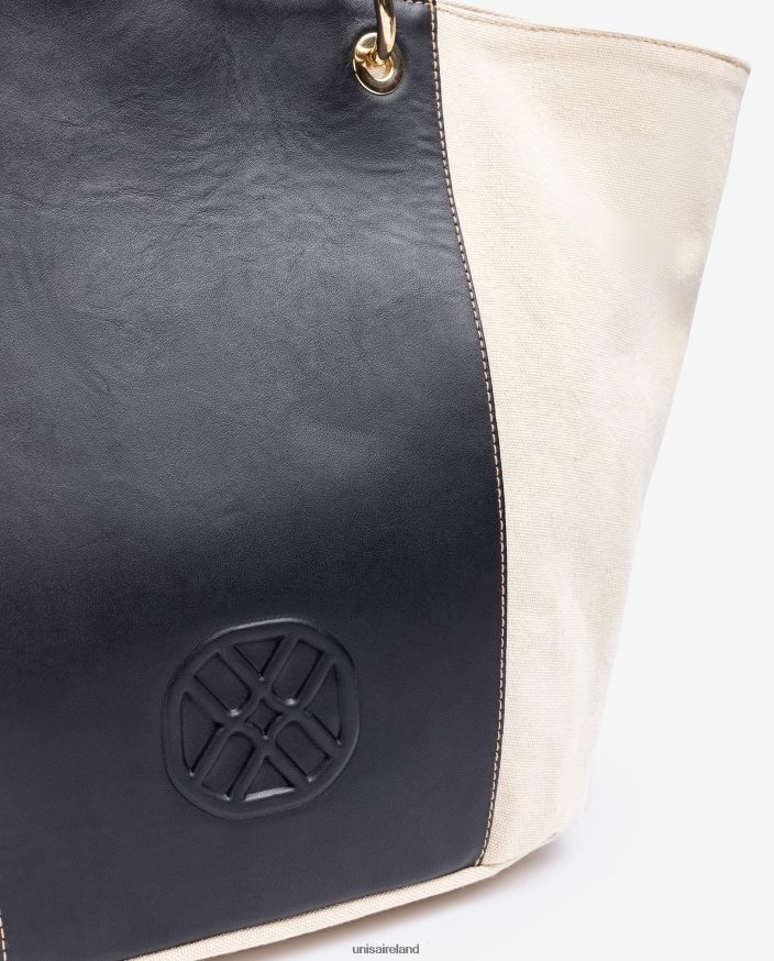 Large shopping bag made in Ecolino fabric. This fabric is made from 100% recycled plastic bottles. Contrasting leather trim with a Unisa monogram. Pocket inside with a zip closure. Size: 29cm x 49cm x 14cm