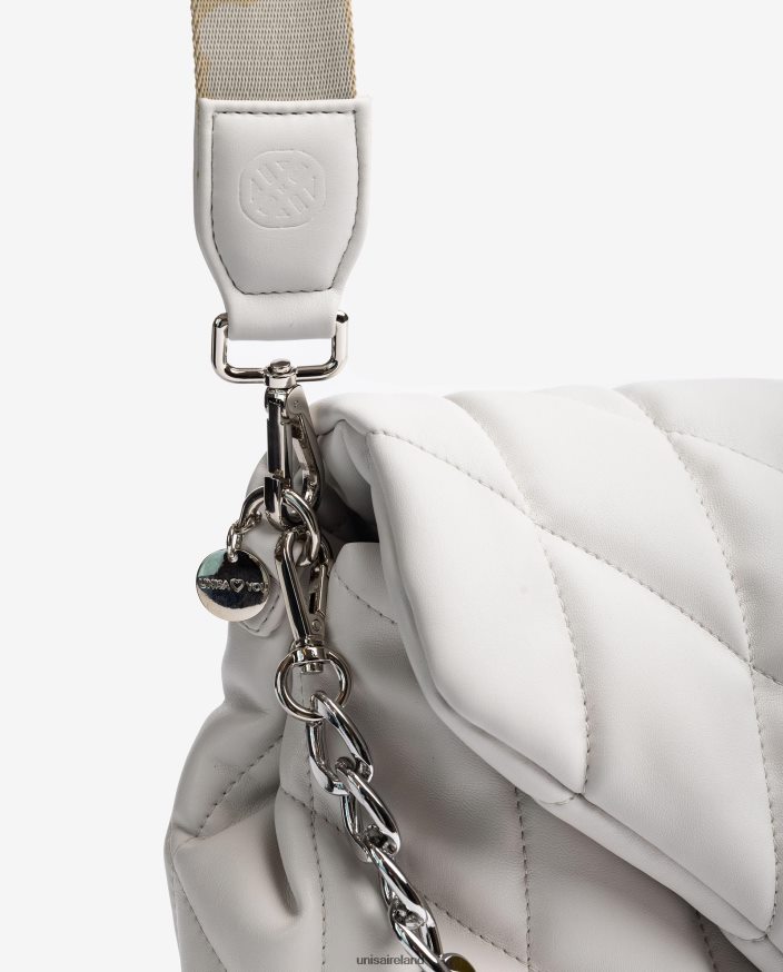Medium padded effect handbag. Compartment with magnet closure. Hand or shoulder strap with metal chain and nylon crossbag shoulder strap.