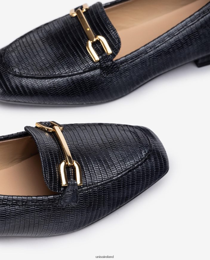 Square toe loafers made in embossed leather. Removable and ergonomic insole and 1.5cm low heel. Light, flexible and non-slip rubber sole. Metal stirrup trim. The BRIBO model is a highly valued timeless classic.