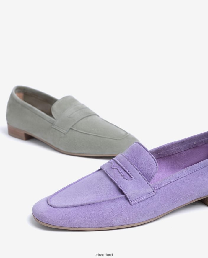 Unlined square toe loafers made in suede with a wood effect 1,5 cm low heel. Detail on the instep. Very light and flexible sole. Feel the comfort when you put these shoes on!