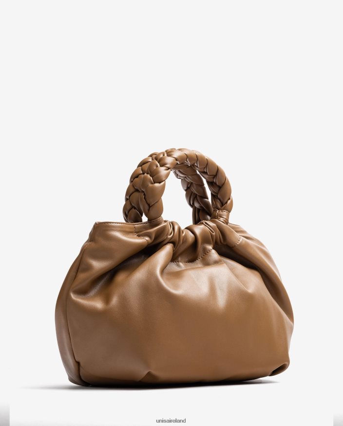 Handbag with a matching colour short round handle. Matching adjustable crossbody strap inside and a magnetic snap closure.