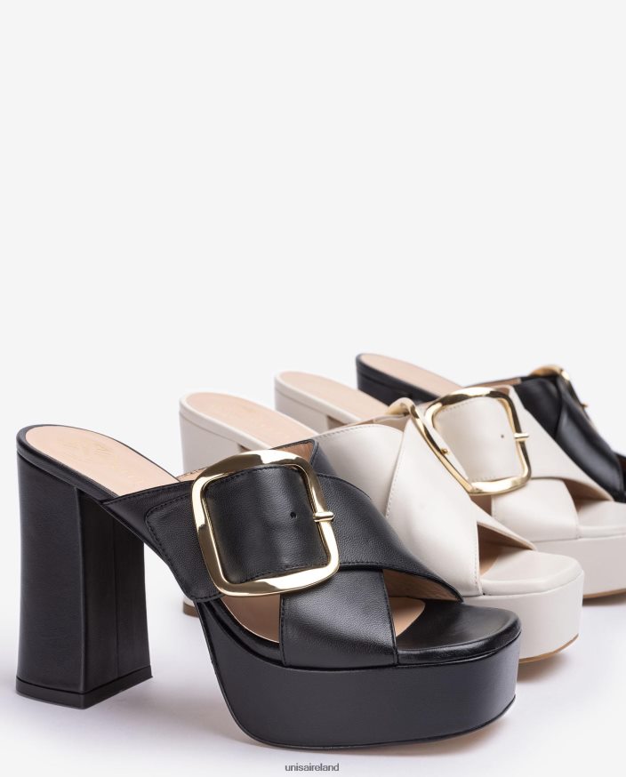 Black 80842D808 Women Unisa Wide crossover strap sandal