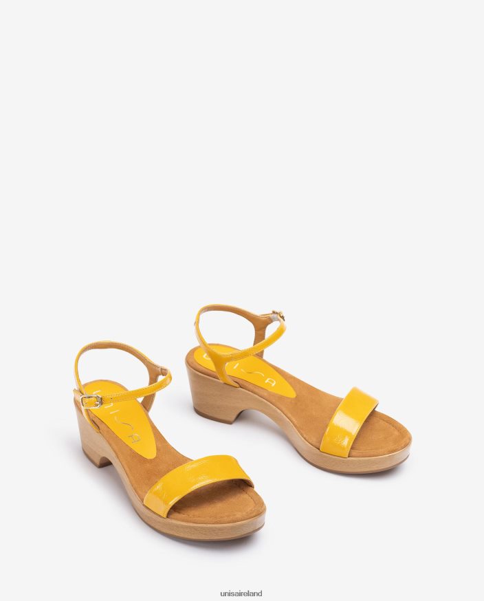 Shiny effect wrinkled leather sandals, in assorted colours, instep strap adjustable with buckle. Wood effect 5,5cm block heel with a 2cm platform. The favourite sandals for your street style looks.