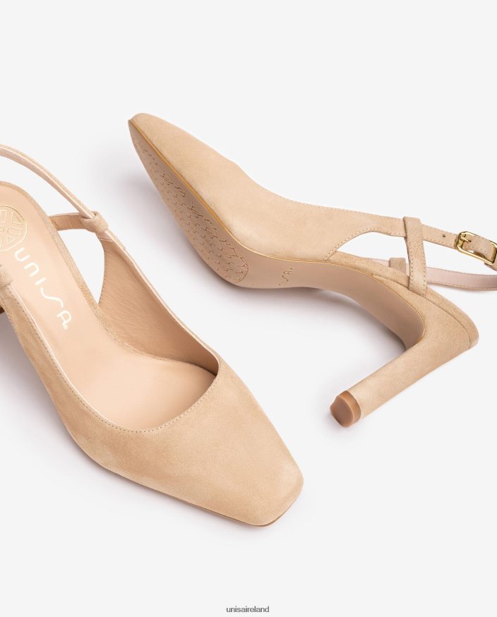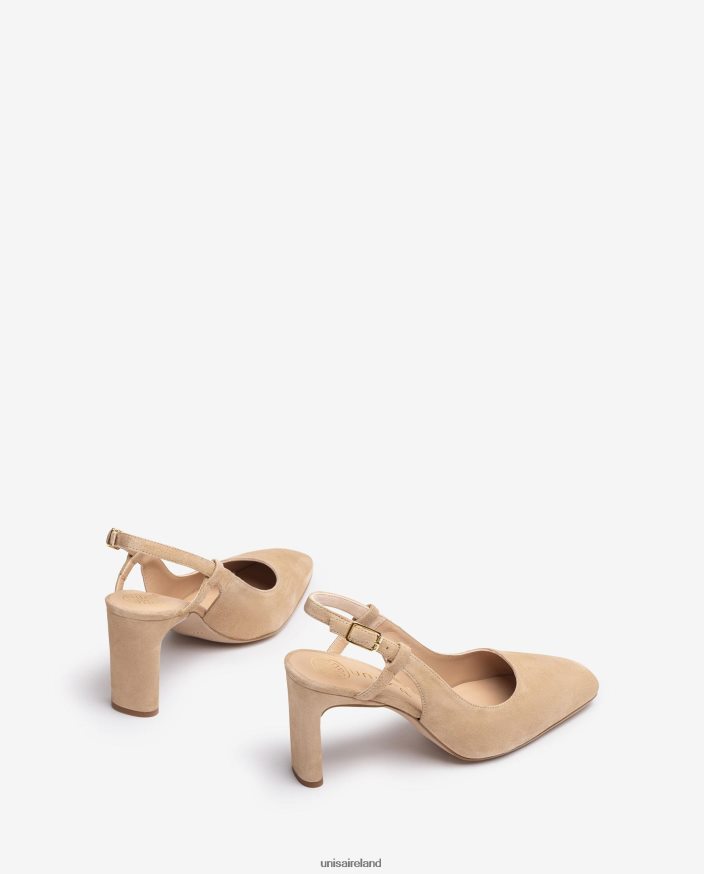 Square toe sling back made in suede. 7.5cm heel covered in a matching tone of suede. Light, flexible, non-slip, rubber sole and an ankle strap that can be adjusted with the metal buckle. The design of the WACU model from Unisa will surprise you!