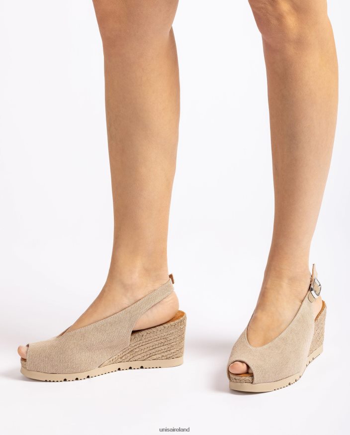 Espadrille style slingback sandals made in recycled fabric by Unisa. 7.5 cm heel and 2.5 cm platform. Non-slip, flexible, light rubber sole.