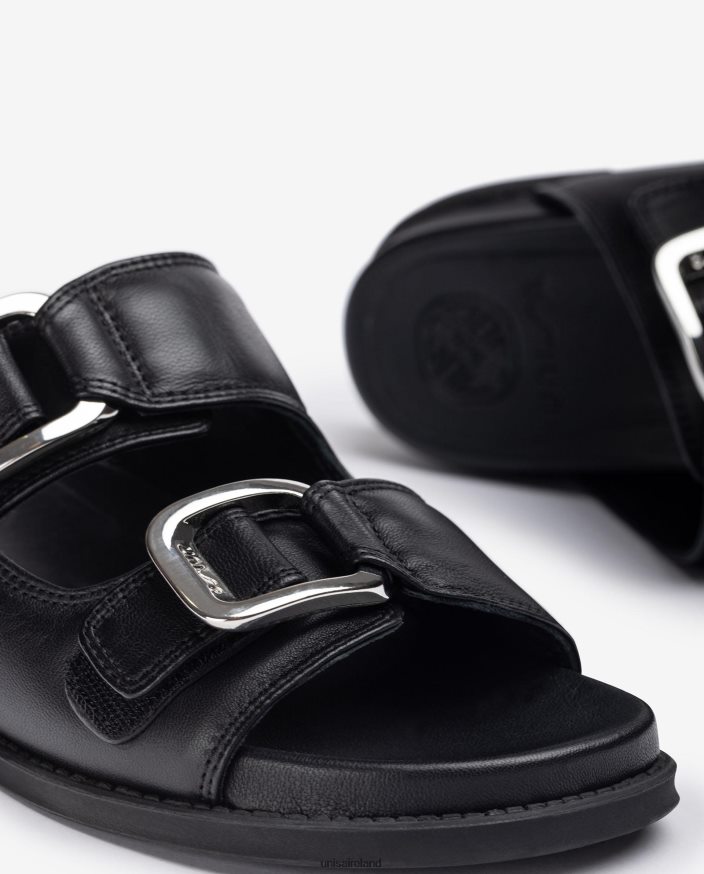 Black 80842D319 Women Unisa Flat double buckle sandal