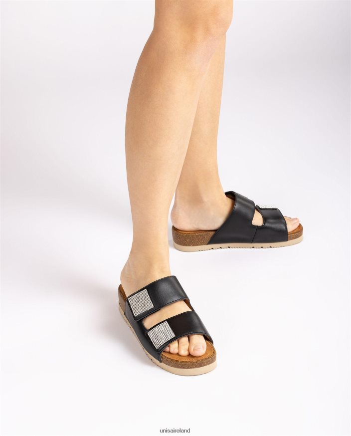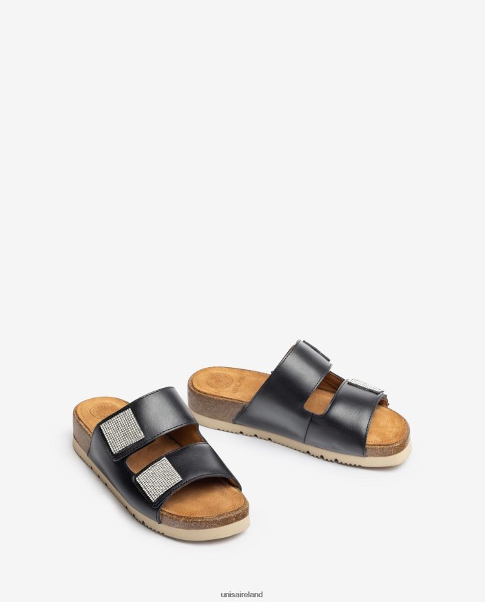 Black 80842D94 Women Unisa Flat sandal with a double strap