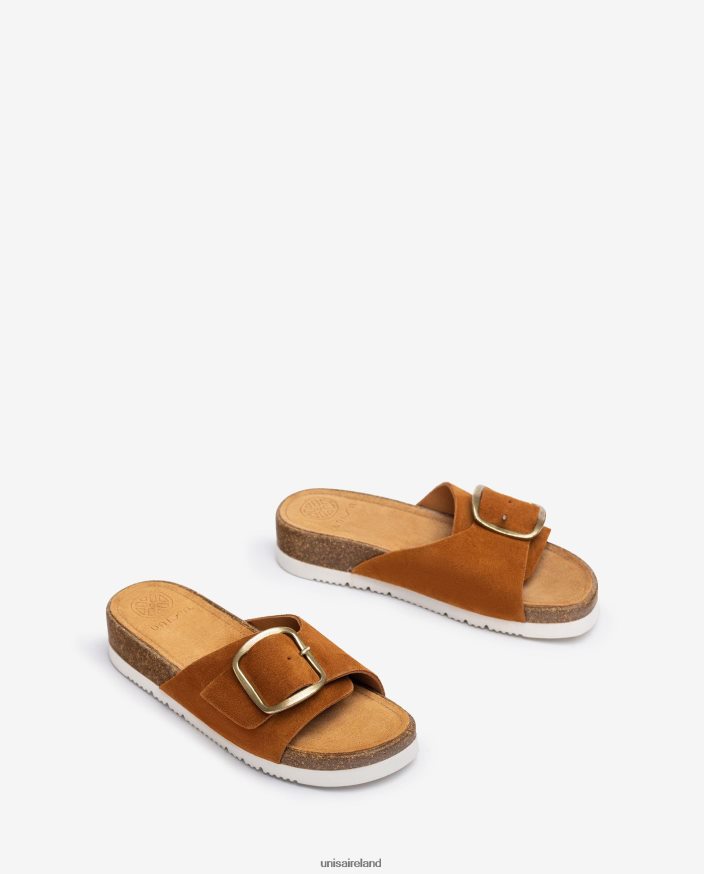 Brown 80842D325 Women Unisa Suede sandal with a buckle