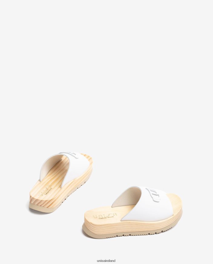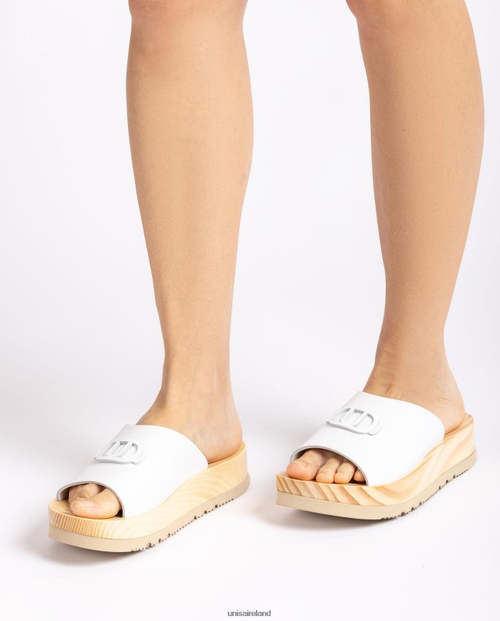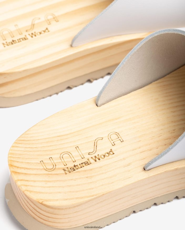 White 80842D352 Women Unisa Sandal with a wood effect sole
