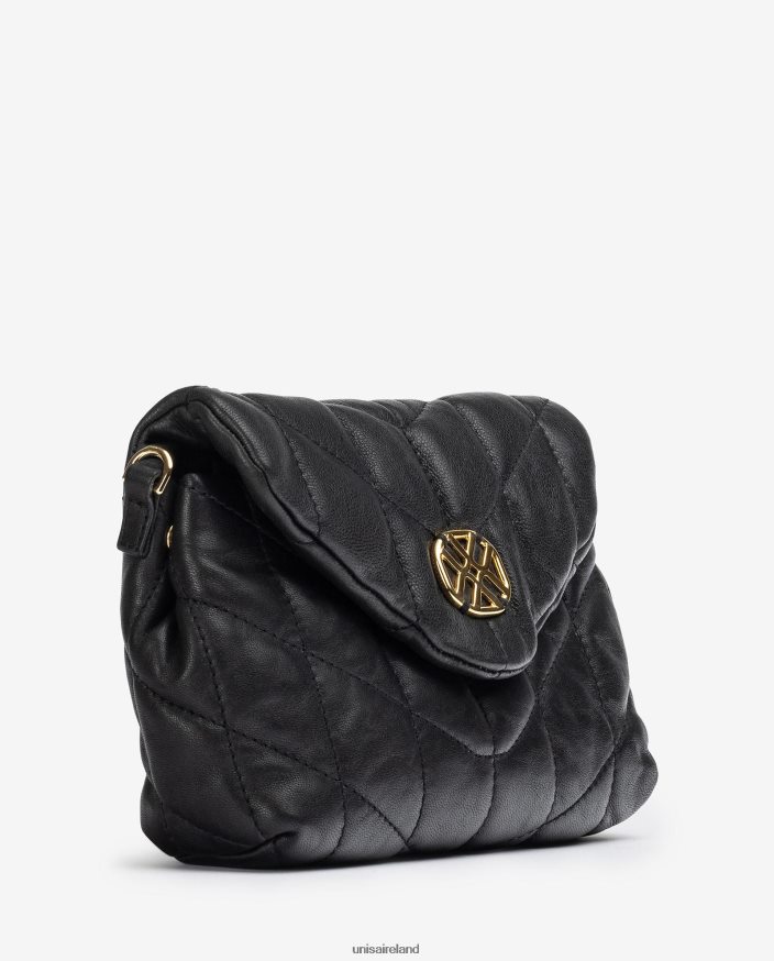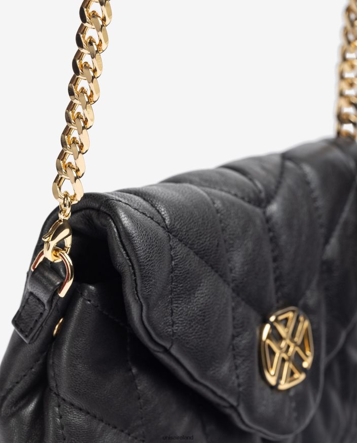 Small handbag made of padded leather-effect fabric. Magnet closure with monogram detail on flap. Removable metal crossbag chain. 13cm x 19cm x 6cm