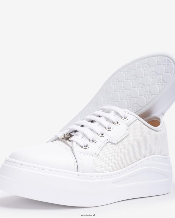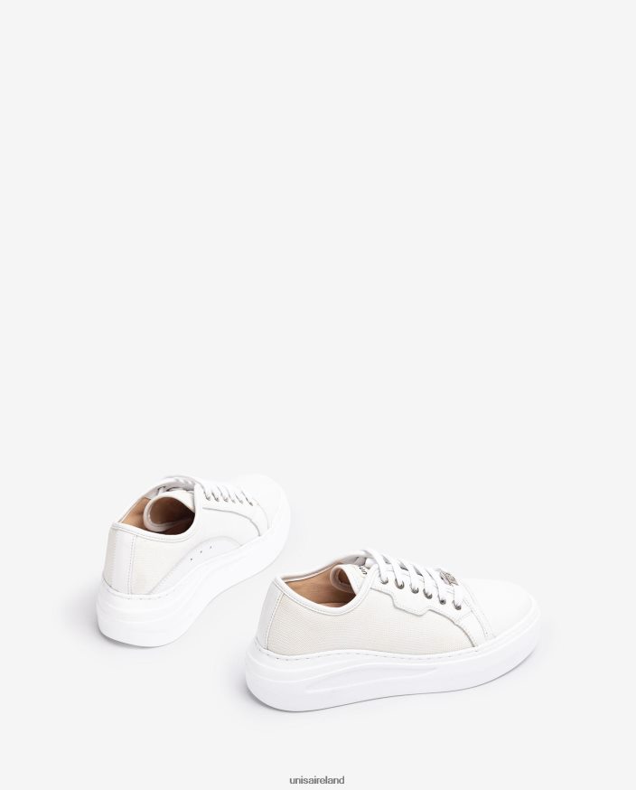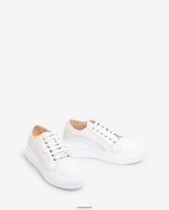 Sneakers made in contrasting fabric and metallic leather. White leather toe. Removable insole made with SuperSoft technology for more comfort. 4cm platform sole with volume. The Strobel stitching system has been used for more flexibility and lightness.