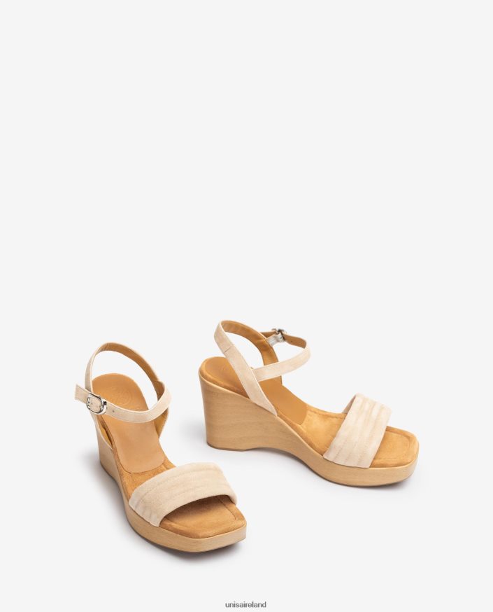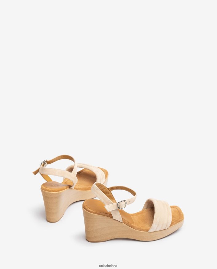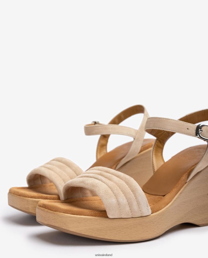 Square toe sandal made in suede. Light PU 8.5cm wood effect wedge and a 2.5cm platform. Wide quilted effect vamp and an ankle strap that can be adjusted with the metal buckle. Light, non-slip, rubber sole. UNISA essence in its pure state.