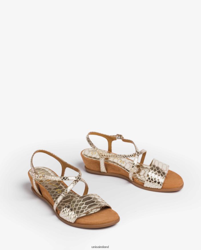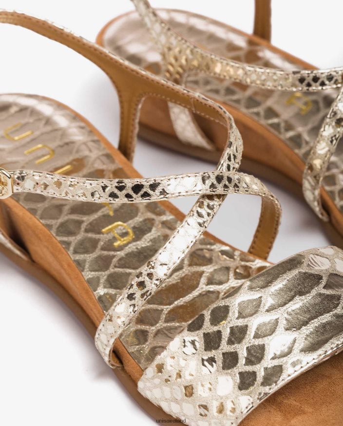 Gold 80842D442 Women Unisa Metal effect snake print leather sandals