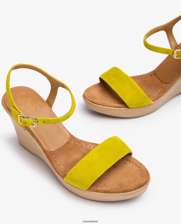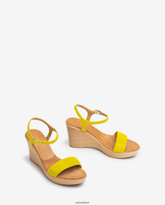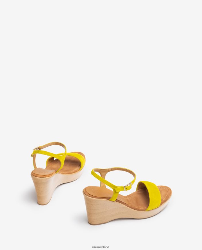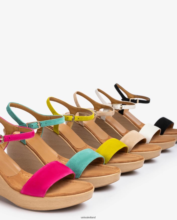 Suede sandal in various colours, a strap on the instep that can be adjusted with the metal buckle. PU wood effect block with an 8.5cm heel and a 2cm platform. UNISA essence in its pure state.